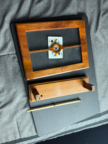This is a gorgeous glass penetration using a beautiful brass rod. Made of elegant wood. These are extremely rare the most recent one sold for $450 at Potter & Potter. Sliding gimmick works great